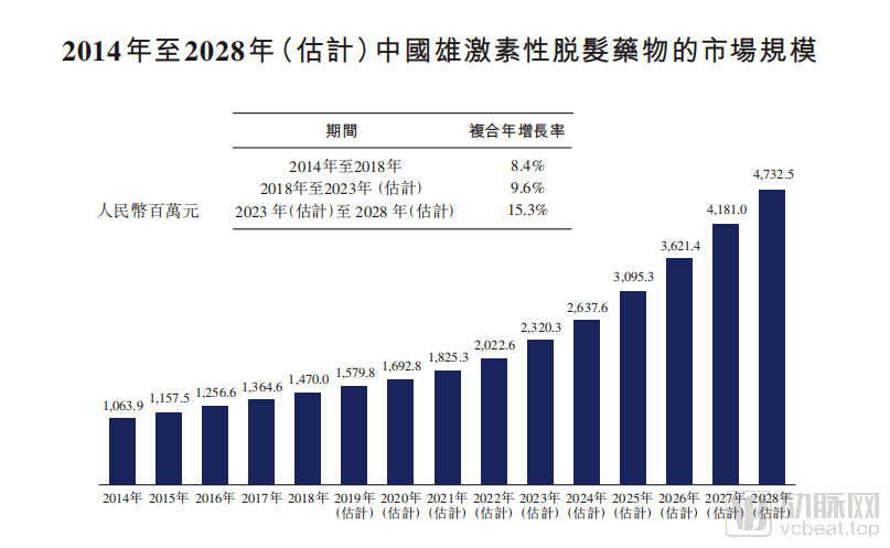 2014-2018年中國(guó)脂溢性脫發(fā)藥物市場(chǎng)規(guī)模